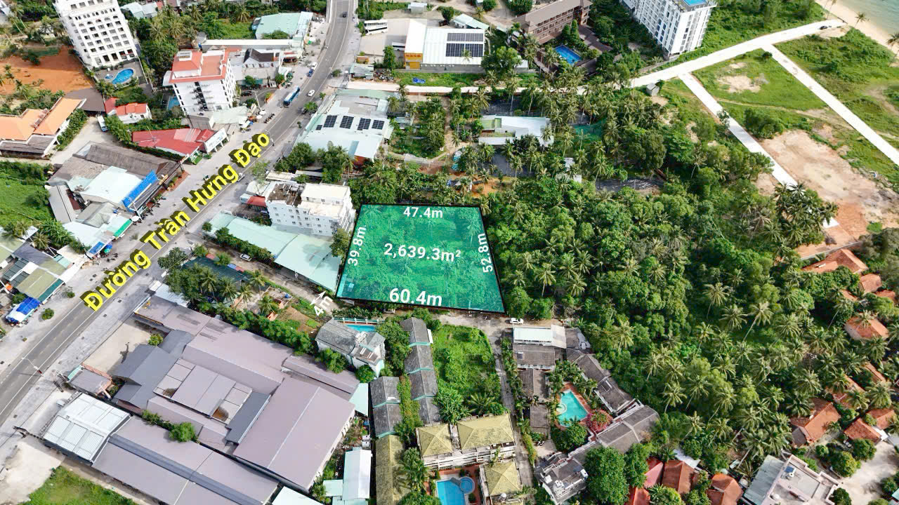 - Chính chủ gửi bán đất Trần hưng đạo, Thành phố Phú quốc diện tích 2639m2, cạnh khách sạn sun sea dương tơ.lô đất vuông vứt,( 52x60) đường thông thoáng,ngay vị trí lô đất có 2 đường đi thẳng ra biển ,cách biển gần 250m,cách mặt tiền trần hưng đạo 45m nằm ngay khu nhiều nhà hàng khách sạn đang kinh doanh,