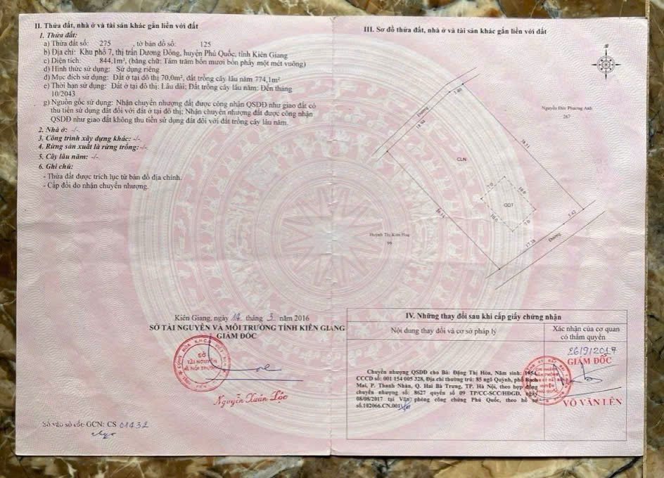 - Cần bán đất Phú Quốc Chủ gửi bán 844.1 m2 đất khu phố 7 hẻm 113 hẻm trần hưng đạo đất Đặc khu Phú Quốc. mặt tiền gần 23m (23x39) đất 2 mặt tiền đã chuyển 70m2 thổ cư gần đường dự phóng chỉ 10m. Cách Đường Trần Hưng Đạo 70m .