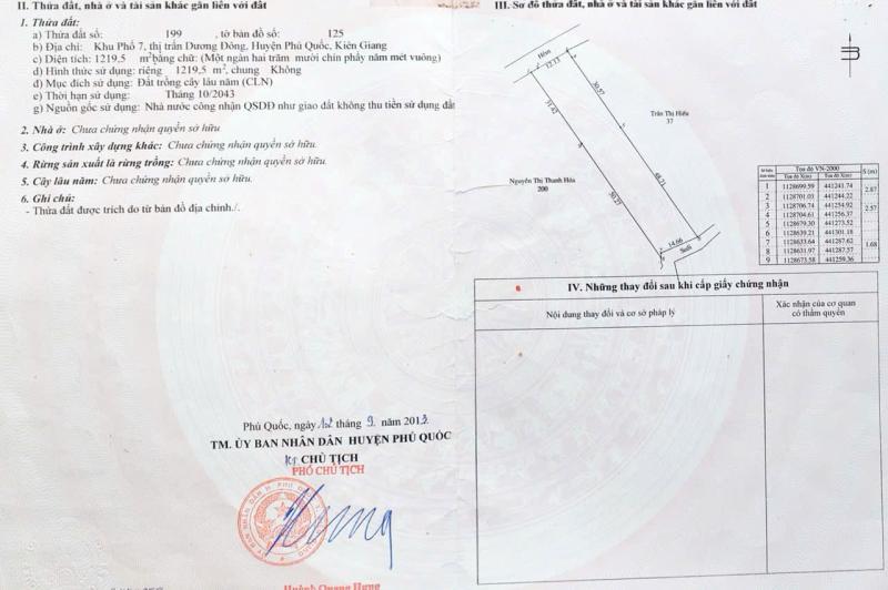 Bán đất Phú Quốc, Ấp Cây Thông Trong Cửa Dương.Thành Phố Phú Quốc
